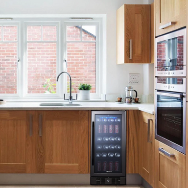 Description This fridge is equipped with removable racks that help to provide customized storage for up to 33 standard bottles. The quiet, power...