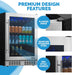 NewAir 24” Built-in Premium 224 Can Beverage Fridge with Color Changing LED Lights